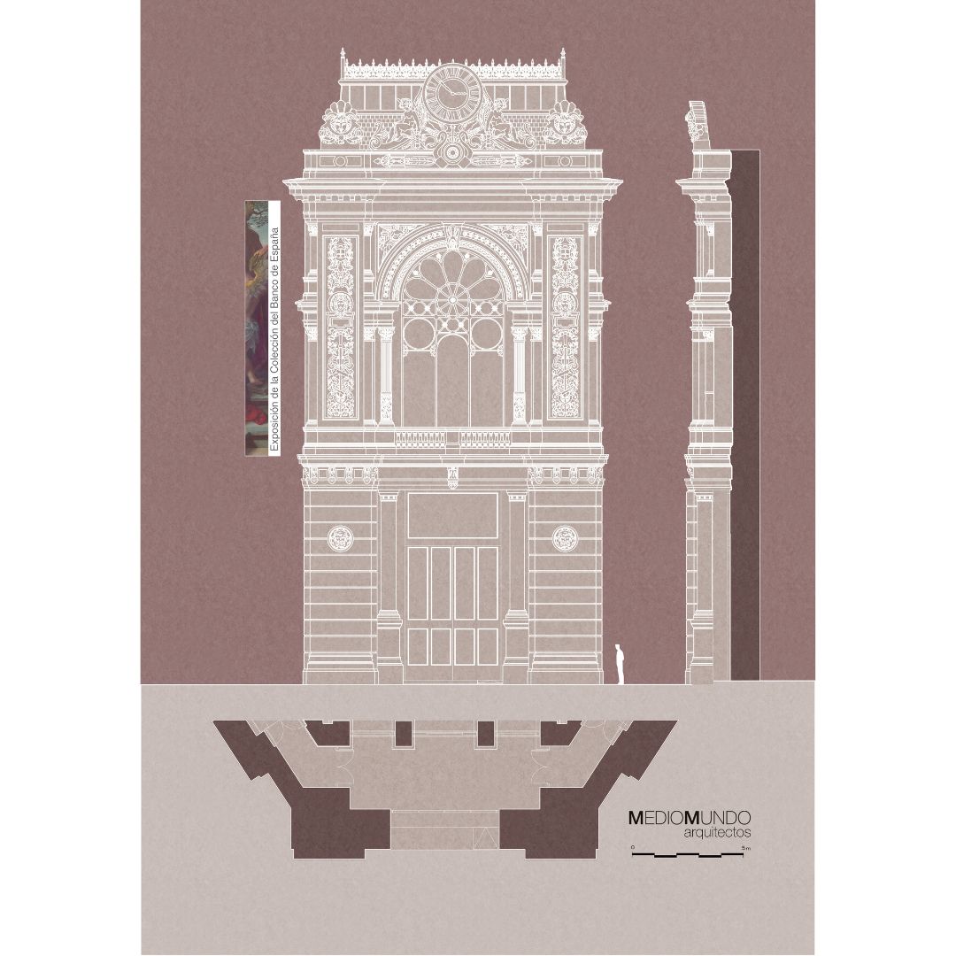 The intervention was inaugurated with the exhibition “2328 Reales de Vellón. Goya and the Origin of the Banco de España Collection”, for which we also designed the exhibition layout. Our aim was to guide visitors from the bustle of Plaza de Cibeles into a space for calm contemplation of the collection, creating a spatial and sensory transition that enhances both the artworks and the architectural setting.